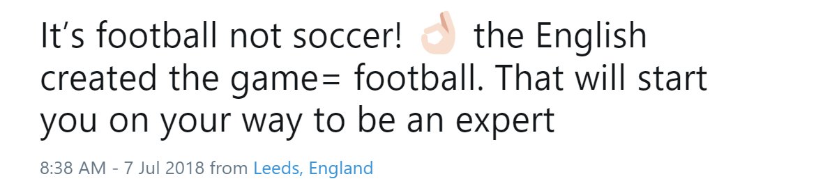 Dear Englishmen, well done so far in the World Cup, and just a reminder that you created the word "soccer" in the first place (short for Association Football). I don't know why you decided to stop using it, but no need to get annoyed if others use words you invented. Thanks.pic.twitter.com/xvjD6cAMg3