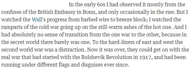 Le Carre always a bit suspect, but this is an interesting perspective: WWII a distraction http://www.theguardian.com/books/2013/apr/12/john-le-carre-spy-anniversary …pic.twitter.com/CslKWL9yqs