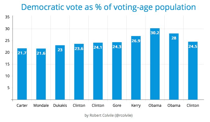 Agrees with my conclusion: Clinton got the base D vote without the Obama bonus vote, Trump got the base R vote.https://twitter.com/rcolvile/status/796646064405303296 …