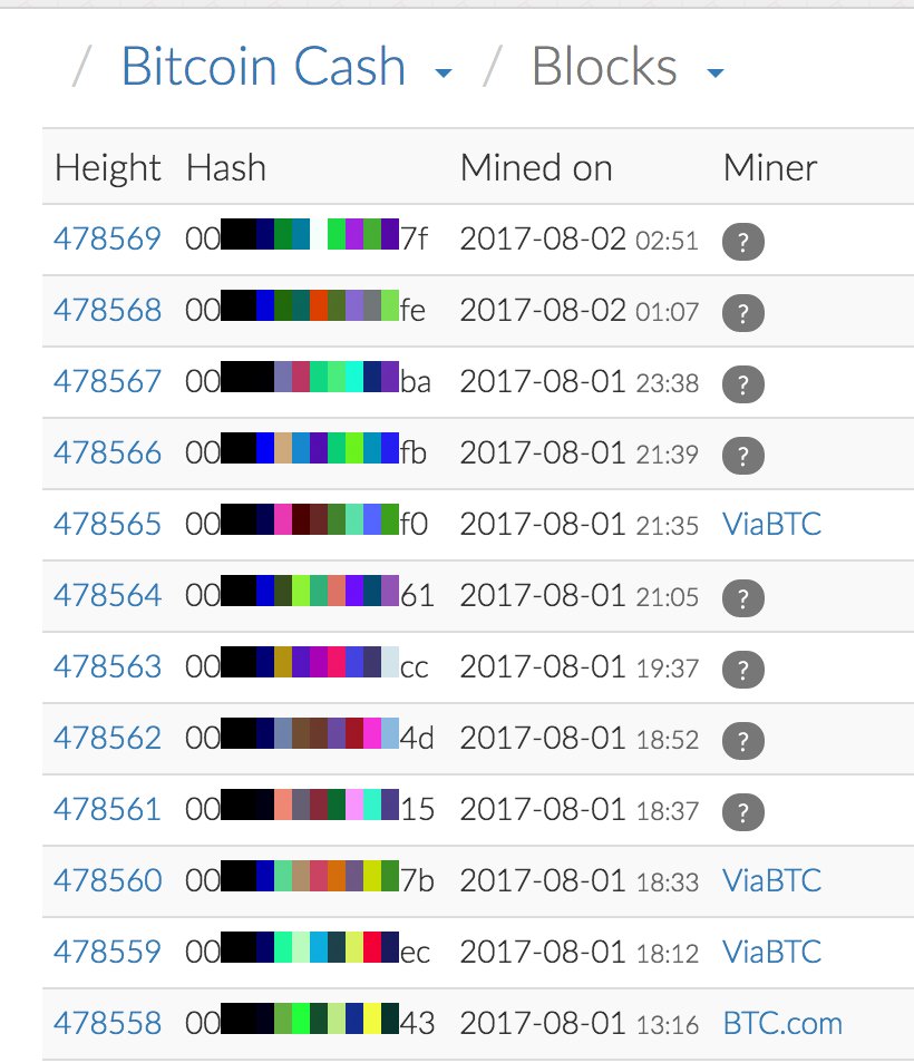 Hmm. newest here https://bitinfocharts.com/bitcoin%20cash/explorer/ … shows up for me as 2017-08-02 06:15:01, which wld be less than 2 hrs ago if EDT. is it localizing?