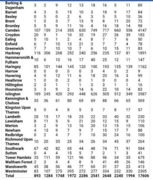 moped-enabled crimes this year by month. last table is total this year. for some reason it's a north London thing pic.twitter.com/afuYCWOQ9C