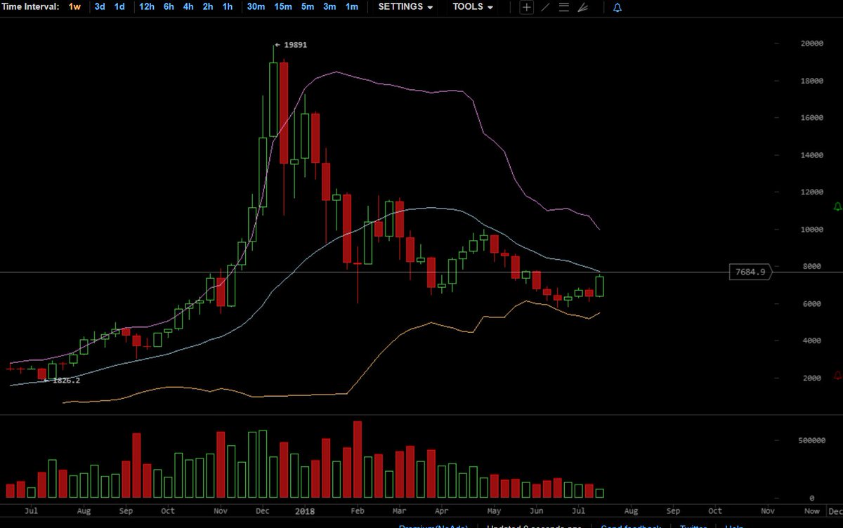 Almost hit the Weekly middle bbands and just $100 bucks away.. Increasing my targets to 8200-8400, hoping for a top bband test.pic.twitter.com/5IV0qWgFve