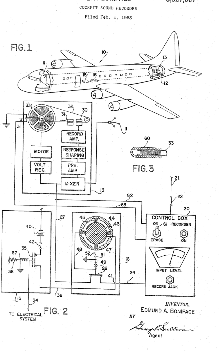 57 years ago today, on February 4, 1963, Edmund A. Boniface, Jr., an aeronautical engineer at the Lockheed Corp. filed a patent for a "Cockpit Sound Recorder” (CSR) with erase function, following two fatal Lockheed Electra accidents in 1959 and 1961.pic.twitter.com/rMX3fhmfHn