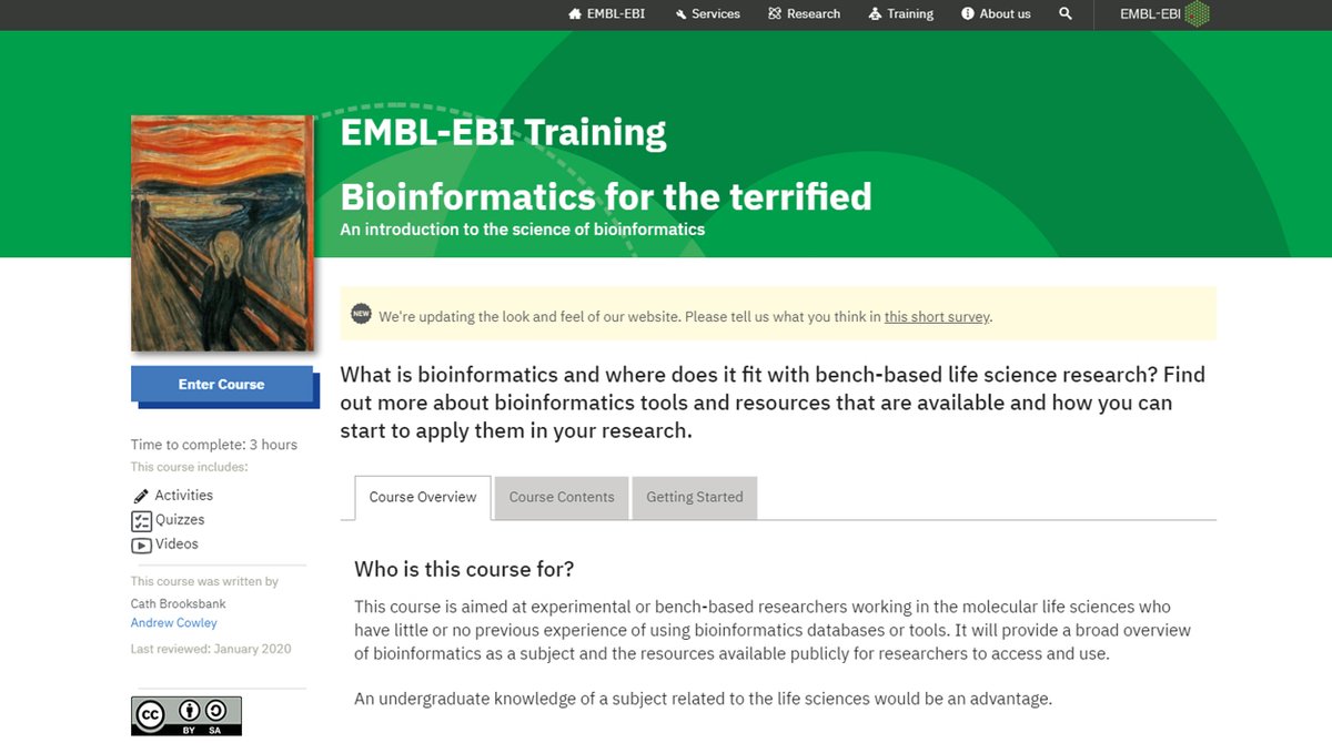 #Bioinformatics for the terrified, the first online course in the new beta version of@EBItraining. Visit https://bit.ly/36l1dIw and leave your feedback.https://twitter.com/EBItraining/status/1220338049118363649 …
