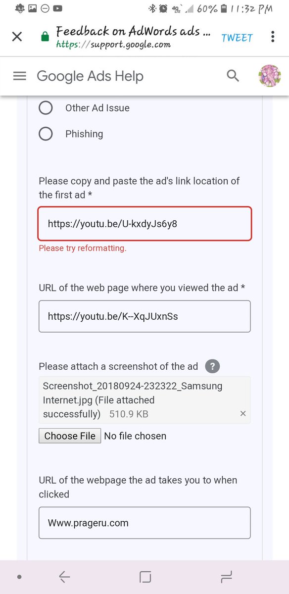 @teamyoutube Look, i have filled out your form, but i don't know what you mean by the "ad's link location of the first ad*" I tried to post the link to their site, and even to the matching video on their youtube account but i had to click out of the ad to answer other questionspic.twitter.com/Wjaxc5UcEc