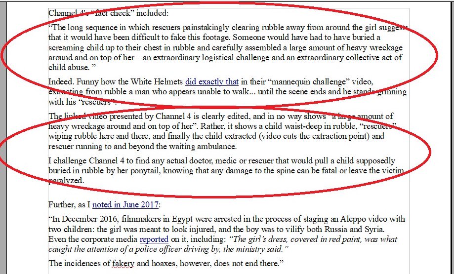 Sir ... you just presented to me an amazingly detailed analysis by a mainstream media outlet of just ONE claim made against Syria's White Helmets. My response: WHEN have you ever seen a similar careful MSM analysis of claims BY White Helmets of their supposed HEROISM ? I haven't.