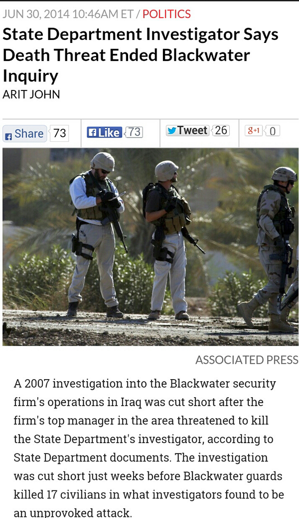 Whats msg frm USA contrctng BlkWtr 2 fight ISIL?