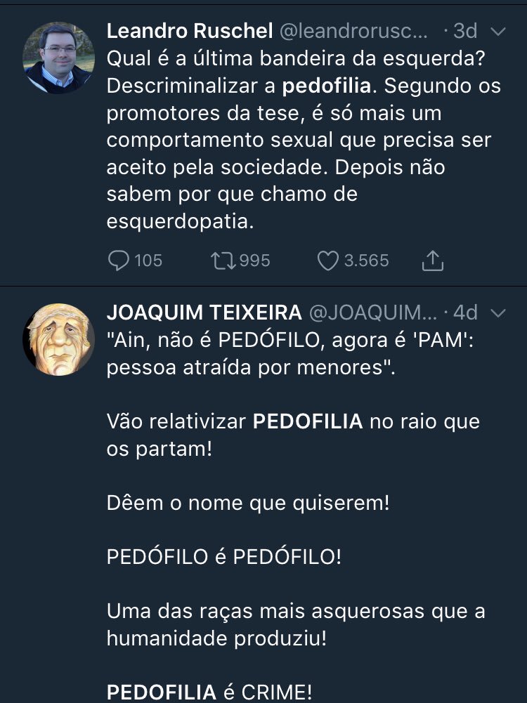 É parte de um esforço organizado desses caras. É fácil cair nessa (eu já caí várias vezes). Mas por que estamos entrando na pauta deles? Qual interesse em se falar em pedofilia agora e não nos mil assuntos mais urgentes que irão nos atropelar ali na frente nas eleições?pic.twitter.com/ZFedAitMxL