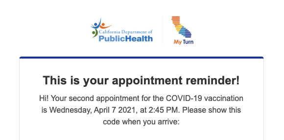 The sense of an ending. Also, kudos to CA Public Health for actually pulling together a pretty usable and helpful (nudge, nudge) user vaccination experience.pic.twitter.com/XirrDLhj6X