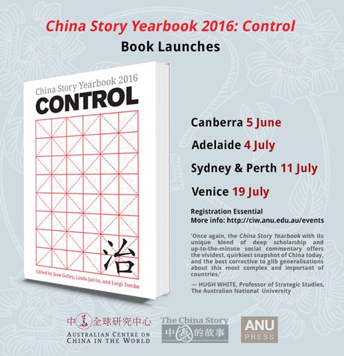 Register now for the Canberra Launch of China Story Yearbook. The 2016 theme is on "Control".