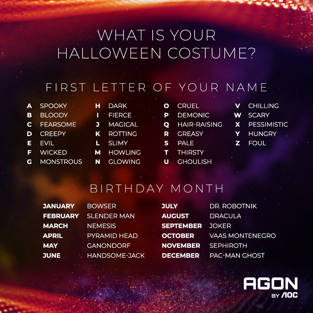 Spooky Pac-Man Ghost or magical Joker... How are you going to dress up for Halloween? Find out with our unique AOC costume generator!