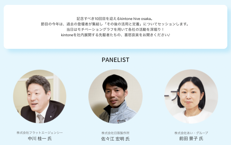 記念すべき10回目のhive大阪。心に響く事例の数々をどうぞ。キントーン! kintone hive osaka vol.10https://kintonehive.cybozu.co.jp/-/osaka2022