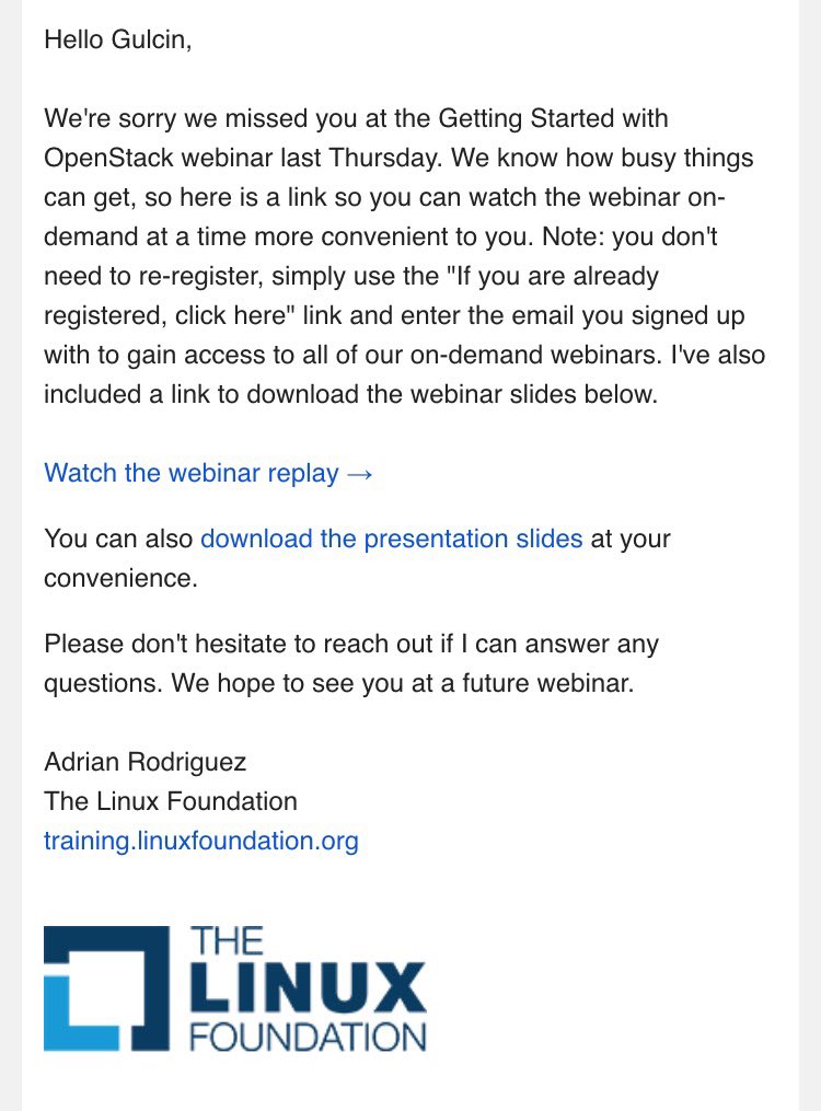 Hi @linuxfoundation very nice move! This email is one of the best ways to make your followers loyal to you! Thanks!pic.twitter.com/hTZIK2cjyV