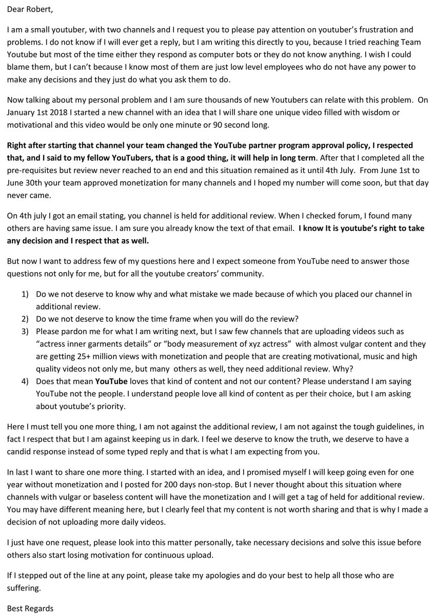 Susan, thanks for the channel and update. I really appreciate it. I have some questions that I shared with @TeamYouTube after that with @rkyncl via a letter. I believe many new creators may have the same issues and would request if anyone can answer some of those questions.pic.twitter.com/uf1R0OYasB