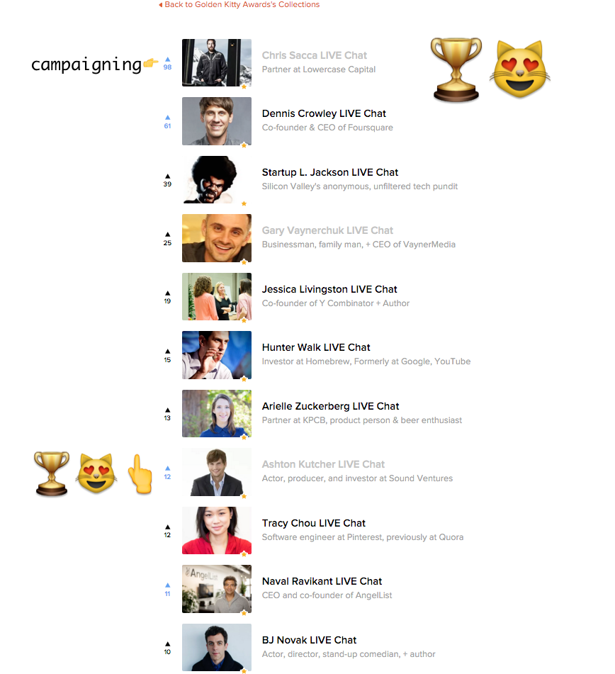 @aplusk you are nominated for a Golden Kitty as well! But your fellow Shark is in the lead