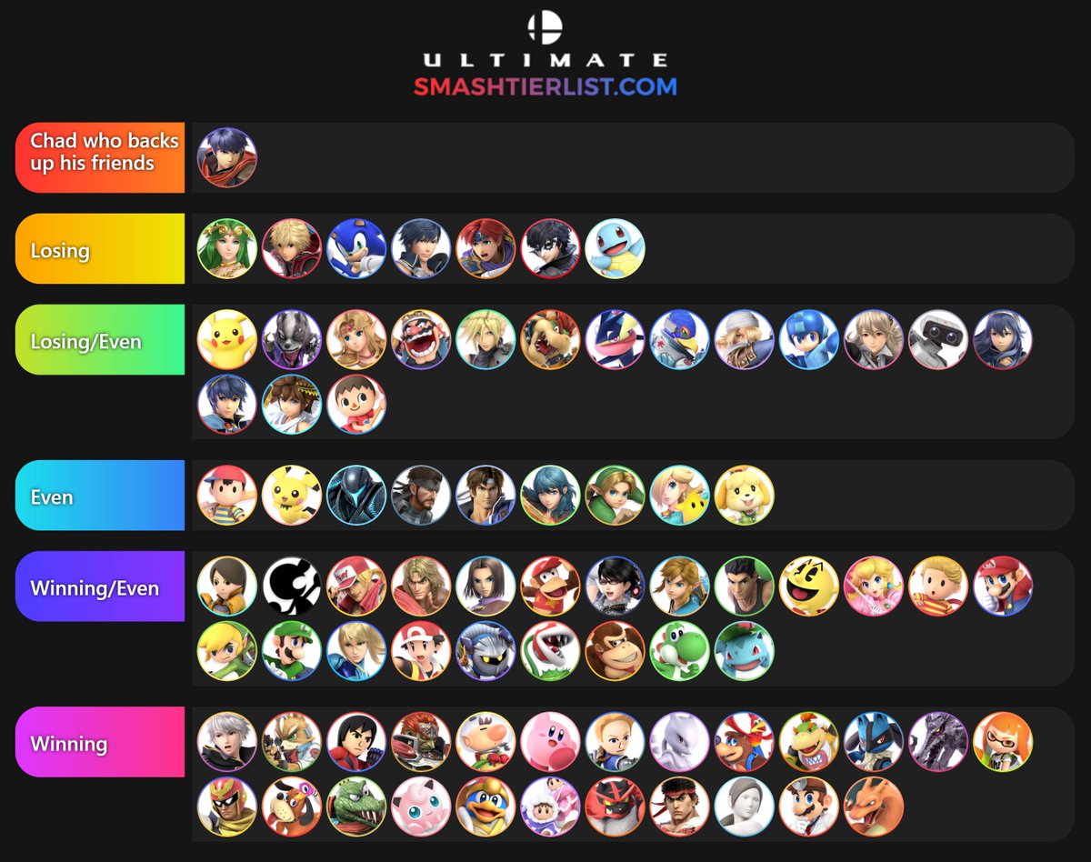 Ike MU chart, not ordered. Went in depth with PT as well. Ike's recovery holds him back so much, it guarantees he goes no better than even with any character with a functional counter. Outside of his recovery he's super solid though, definitely fits my playstyle perfectlypic.twitter.com/j3xLVKmjnJ