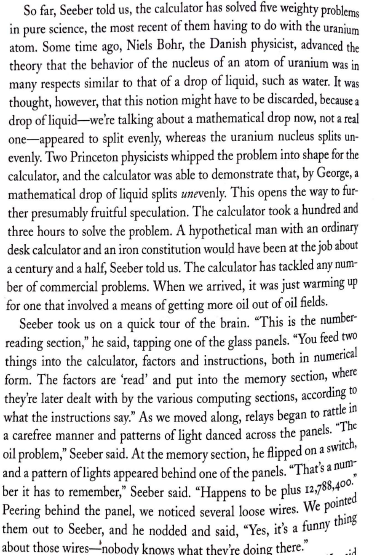 excerpt from a New Yorker article from march 4th 1950 about the IBM Selective Sequence Electronic Calculator (SSEC)--an enormous calculator, the first machine able to treat its instructions as data.pic.twitter.com/QUgQ2vf7rK