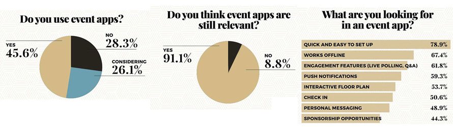 A recent study shows that almost half of everyone surveyed stated that they currently use event/conference apps. A further 26% said they were considering using them, indicating probable growth in the near future.
