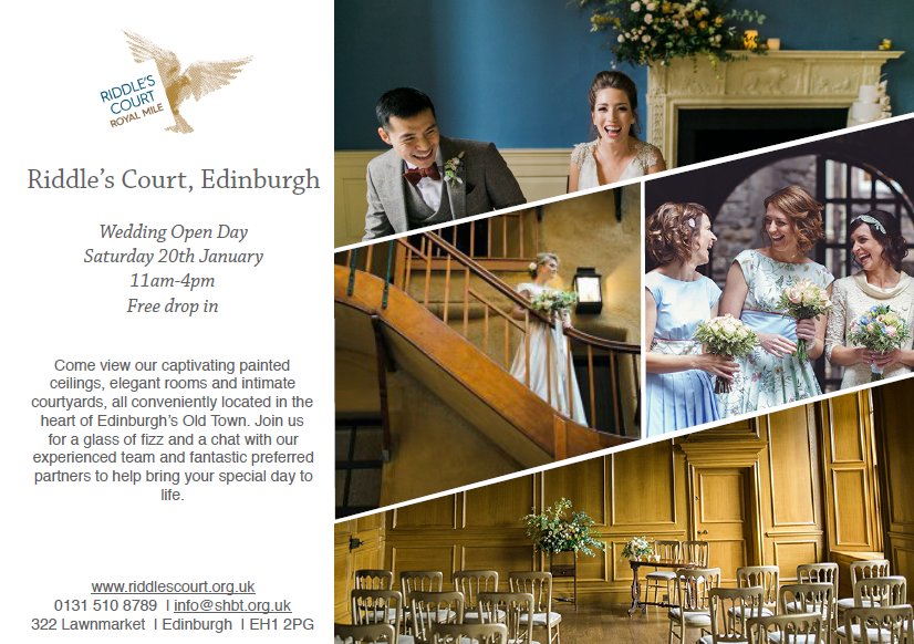Recently engaged? Come join us for our Wedding Open Day on the Saturday 20th January. View our unique wedding facilities, including our captivating painted ceilings, elegant rooms and intimate courtyards, in the heart of Edinburgh’s Old Town. http://ow.ly/peGG30hiqS9 pic.twitter.com/SgfT8iwdHM