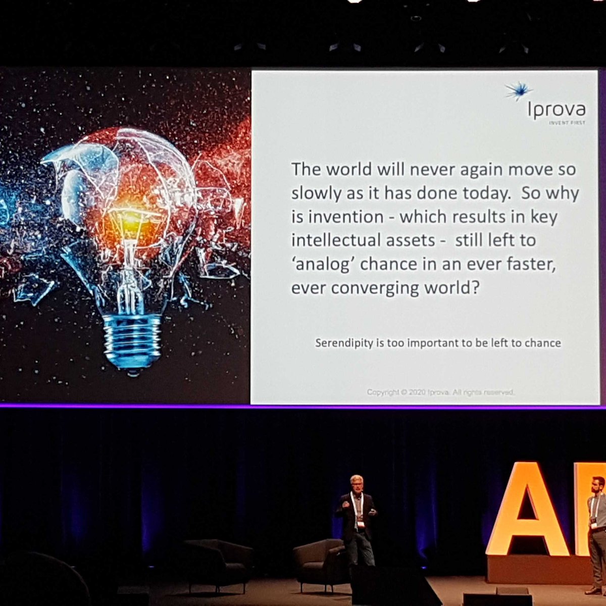 @JulianInvent onstage at#AMLD2020 "Why is#invention-which results in key intellectual assets-still left to 'analog' chance in an ever faster, ever#converging world?#serendipity is too important to be left to chance"@appliedmldays, with@benevolent_ai's Daniel Neilpic.twitter.com/8Pysp671Eo