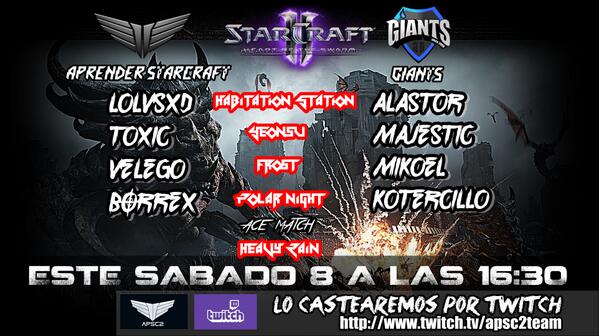 Este sábado jugamos contra @GiantsGaming a las 16:30 ¡ streaming en directo ! @ProLeagueEsp http://www.twitch.tv/apsc2team pic.twitter.com/3DusVKaS6o