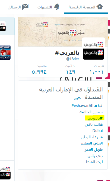 #بالعربي ثالث أعلى الوسوم تداولاً في#الإمارات ... شكراً لجهودكم!@MBRF_News@Taghreedat@JamalBnHuwairebpic.twitter.com/ACvZHRMwtx