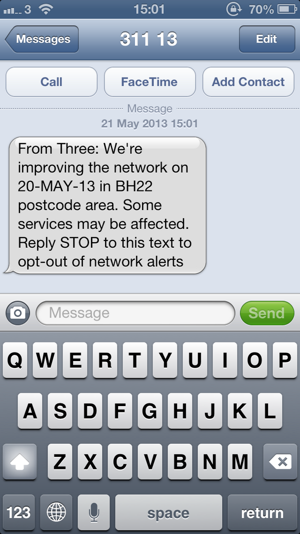 Got an SMS from @threeuk informing me there might be network problems… yesterday. Useful! pic.twitter.com/vgQW7uaU2y