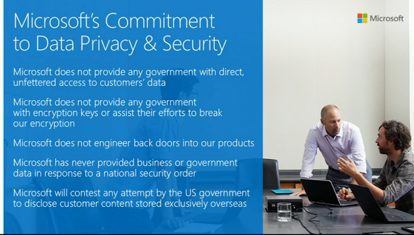 RT @MSProdReviews—Microsoft's Commitment to Data Privacy & Security #WPC14 pic.twitter.com/0o55LFPmKZ