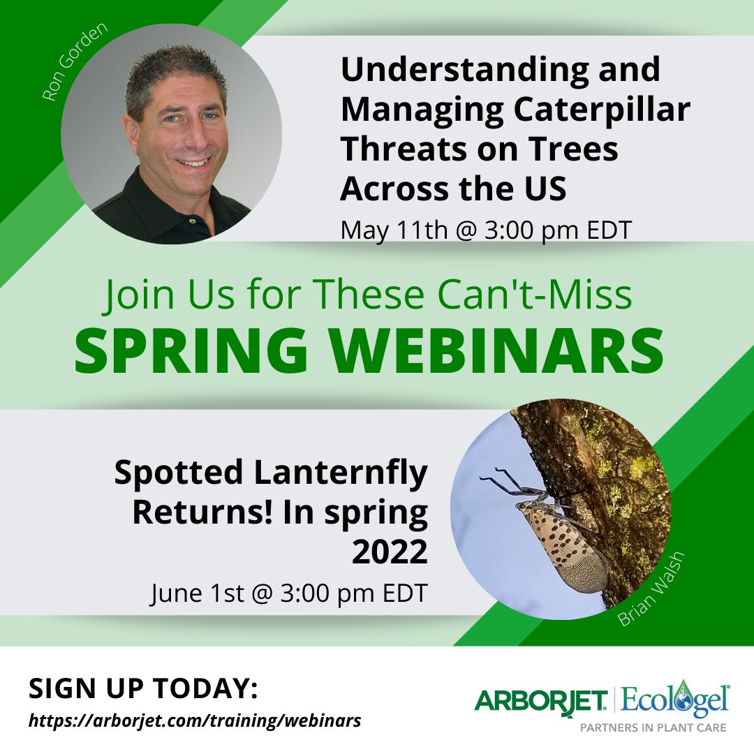 Get ready for a timely webinar on caterpillar management THIS WEEK and another on spotted lanternfly on June 1st. MA credits are available for the 5/11 webinar. Sign up at https://arborjet.com/training/webinars/ …pic.twitter.com/mquFrJ7tMR