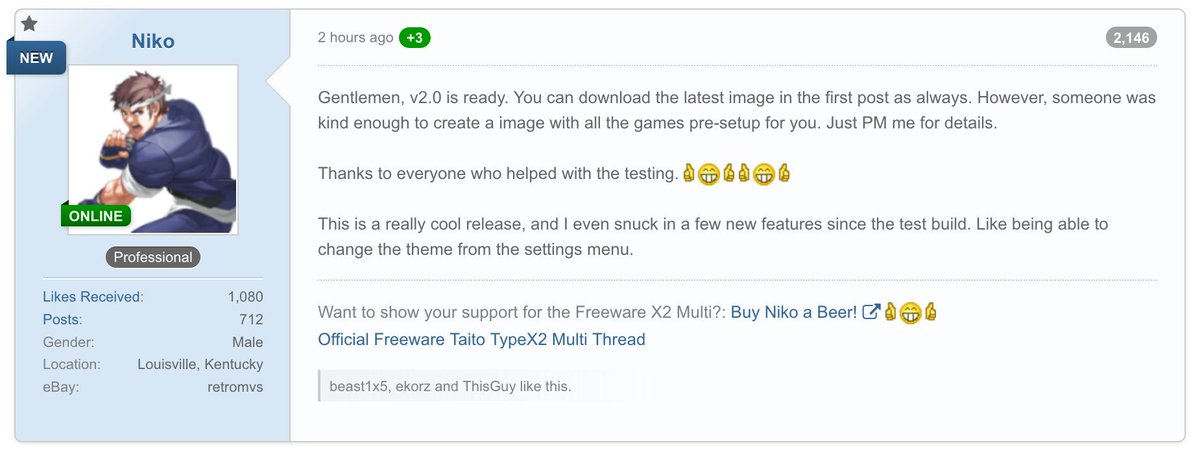 "Gentlemen, v2.0 is ready. You can download the latest image in the first post as always. However, someone was kind enough to create a image with all the games pre-setup for you. Just PM me for details." https://www.arcade-projects.com/forums/index.php?thread/820-a-freeware-taito-typex2-multigame/&postID=161708#post161708 … #TaitoTypeX2Multi #WITHGAMES!!!pic.twitter.com/JYtduAkFnx