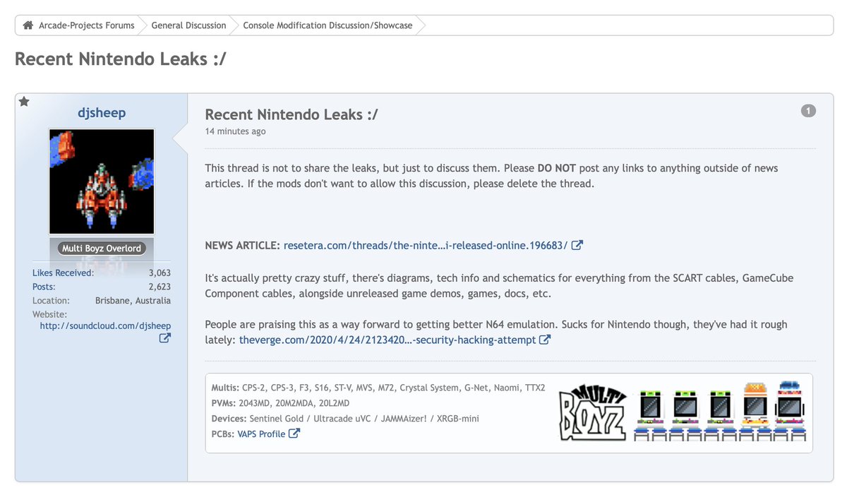 @djsheep are you even serious bruh? You think @64Darksoft and @Misturugi_w are going to let you "discuss" the Nintendo Leaks? https://www.arcade-projects.com/forums/index.php?thread/13087-recent-nintendo-leaks/&postID=211610#post211610 … this thread is officially on "notice". It will be locked if you step out of line.pic.twitter.com/vumJNaA0fx