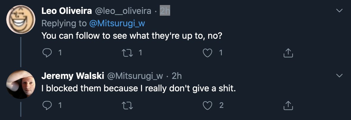 "I blocked them because I'm sick of seeing my cash stream get ate up by public release of info i've been selling." ftfy