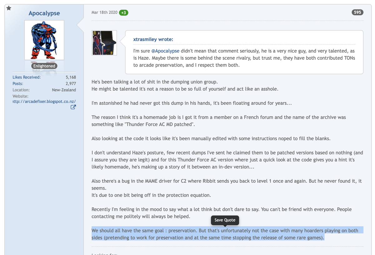 "We should all have the same goal : preservation. But that's unfortunately not the case with many hoarders playing on both sides (pretending to work for preservation and at the same time stopping the release of some rare games)" - https://bit.ly/396kHn0 pic.twitter.com/it7fbUmnN9