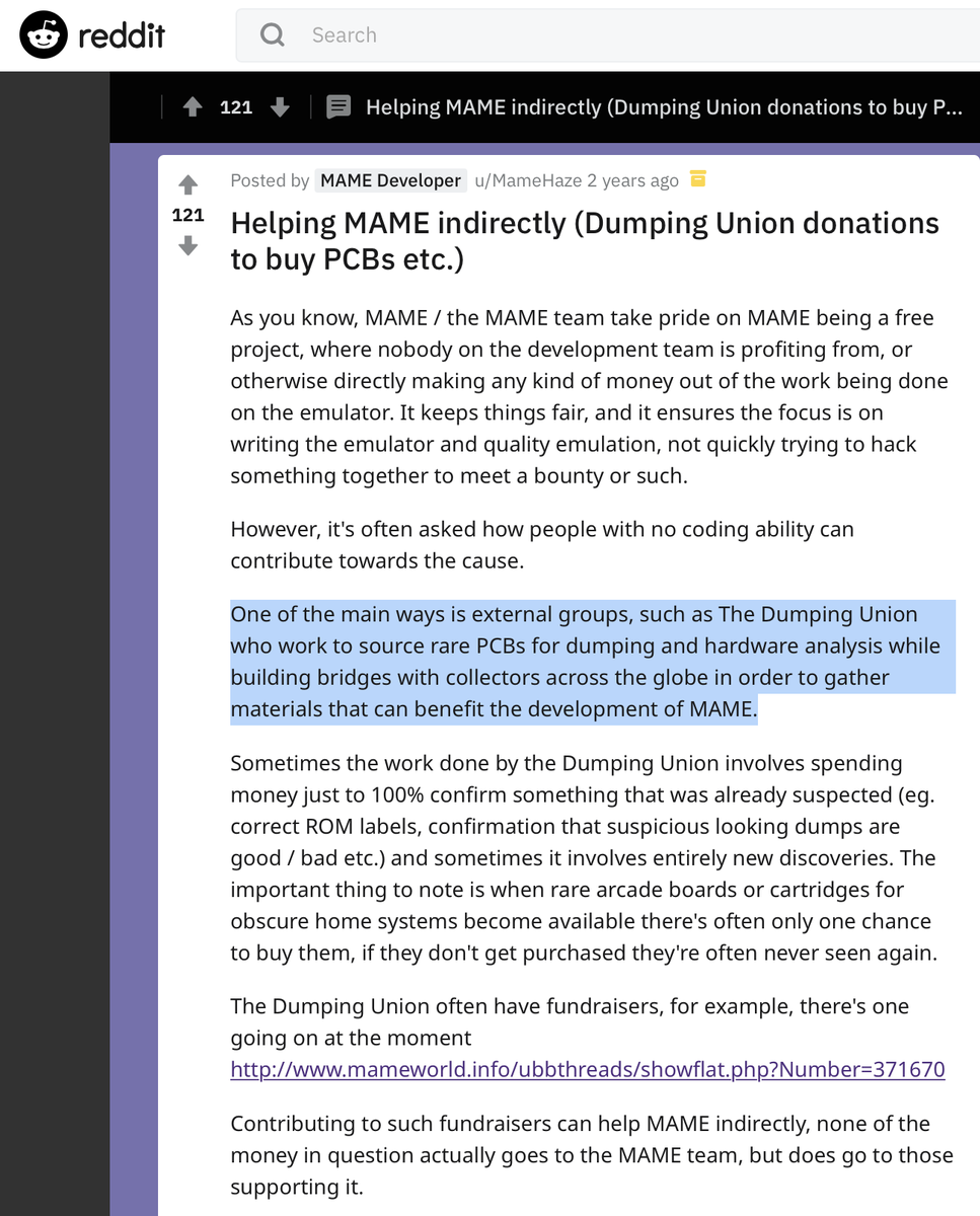 I mean if folks keep sharing all their bypass techniques, how will Dumping Union, and its associates continue "building bridges with collectors across the globe in order to gather materials that can benefit the development of MAME"? Think of all the kids! https://www.reddit.com/r/emulation/comments/7i6zck/helping_mame_indirectly_dumping_union_donations/ …pic.twitter.com/QY18q4S9mH