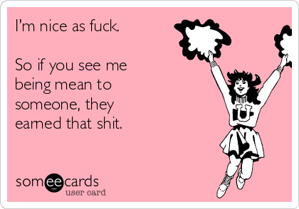 I'm nice as fuck so if you see me being mean to someone they've earned that shit!pic.twitter.com/iVXfzuYceT