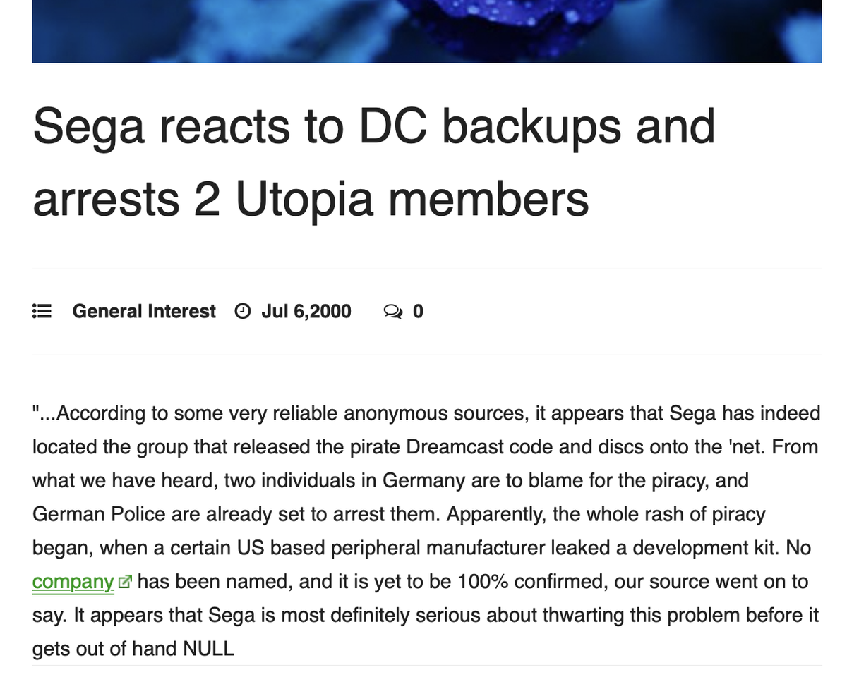 Remember the good old days? "Sega reacts to DC backups and arrests 2 Utopia members" - https://www.cdrinfo.com/d7/content/sega-reacts-dc-backups-and-arrests-2-utopia-members …pic.twitter.com/6nz6D2MHrs