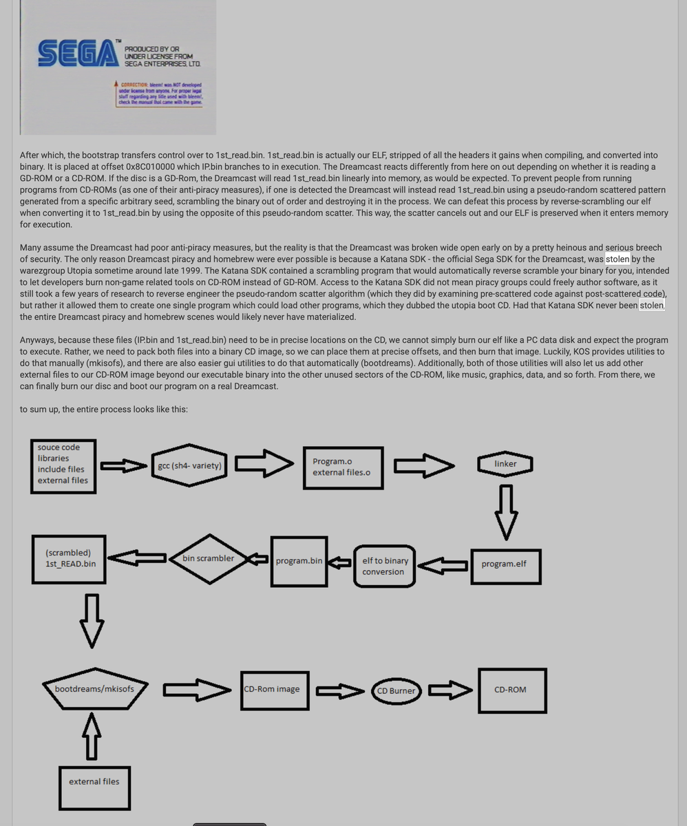 "The only reason Dreamcast piracy and homebrew were ever possible is because a Katana SDK - the official Sega SDK for the Dreamcast, was stolen by the warezgroup Utopia sometime around late 1999." - https://www.neogaf.com/threads/lets-build-a-sega-dreamcast-game-from-scratch-breakout.916501/page-3#post-216433495 …pic.twitter.com/q61bmhTCu3
