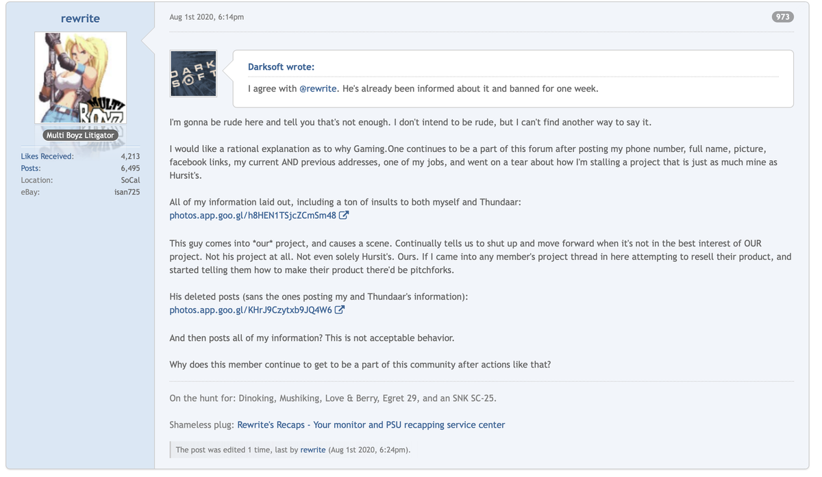 Now look folks, all you need to understand is that http://Gaming.One  and @mitsurugi_w have an interpersonal relationship via DM and it gets tricky when you talk about banning / punishing him. https://www.arcade-projects.com/forums/index.php?thread/11229-pre-order-for-capcom-mini-cute-production/&postID=231576 …pic.twitter.com/tyX2mSexjA