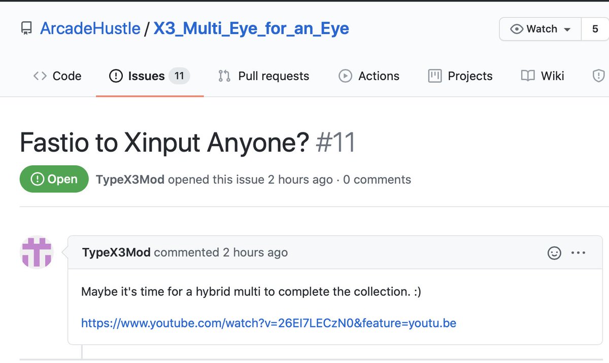 @mitsurugi_w and @64Darksoft have spoken... "Fastio to Xinput Anyone?" https://github.com/ArcadeHustle/X3_Multi_Eye_for_an_Eye/issues/11 …pic.twitter.com/S2MHVNUfZ0