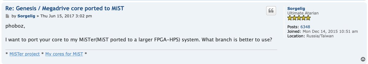 "I want to port your core to my MiSTer(MiST ported to a larger FPGA-HPS) system." https://www.atari-forum.com/viewtopic.php?p=320284#p320284 …pic.twitter.com/JpnFxADfDs