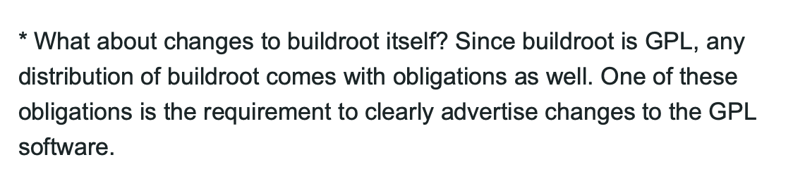 "What about changes to buildroot itself? Since buildroot is GPL, any distribution of buildroot comes with obligations as well." sooo about those "manual modifications" you made @alexey_saarsoft https://buildroot.uclibc.narkive.com/7HTfnemC/buildroot-and-gpl-compliance …pic.twitter.com/LDIL14oCdx