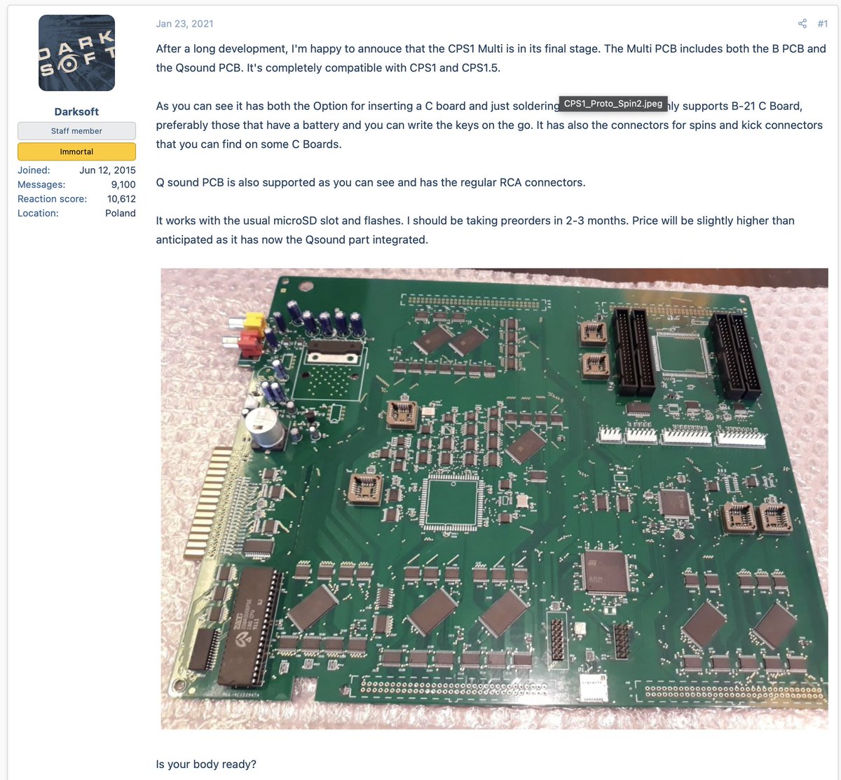 "After a long development, I'm happy to annouce that the CPS1 Multi is in its final stage." I still laugh every time I read this @topapate. https://www.arcade-projects.com/threads/cps1-multi-official-thread.16259/ …pic.twitter.com/WQXqXfdN8z