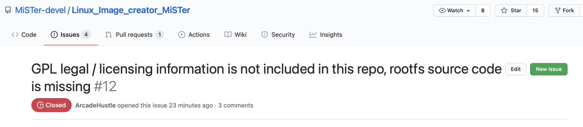 Well excuse me! We've been appeased out of spite. And on this day #MiSTerFPGA began proper steps to abide by GPL licensing. Baby steps, but steps none the less. @alexey_saarsoft has manned up after all.pic.twitter.com/zcBp7DFu2m