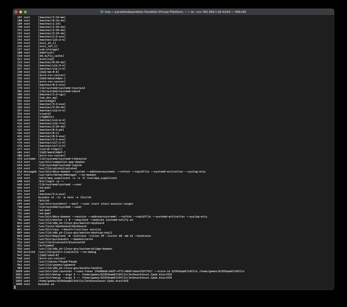 There we go, we've got a root shell, instead of that user shell. Dashboard is launched, and we've got a for pay game running in the back ground on @TheAtari_VCS #atarivcs. "/home/games/QJ3X3aqmEI43VlIo/JetboardJoust.Cpda.AtariVCS"pic.twitter.com/5UgICvgup7