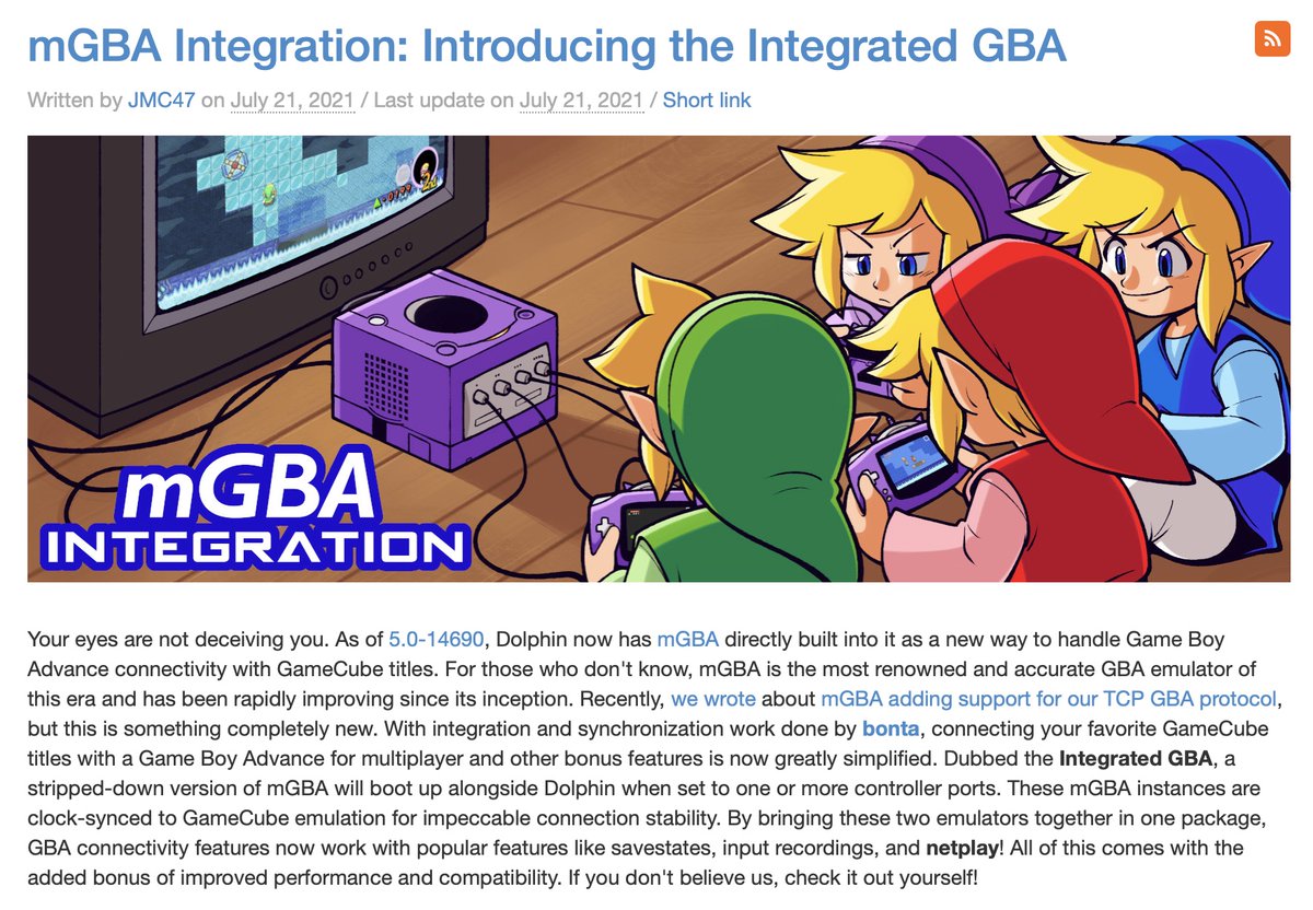 "Your eyes are not deceiving you. As of 5.0-14690, Dolphin now has mGBA directly built into it as a new way to handle Game Boy Advance connectivity with GameCube titles." https://dolphin-emu.org/blog/2021/07/21/integrated-gba/ …pic.twitter.com/CApBUH470V