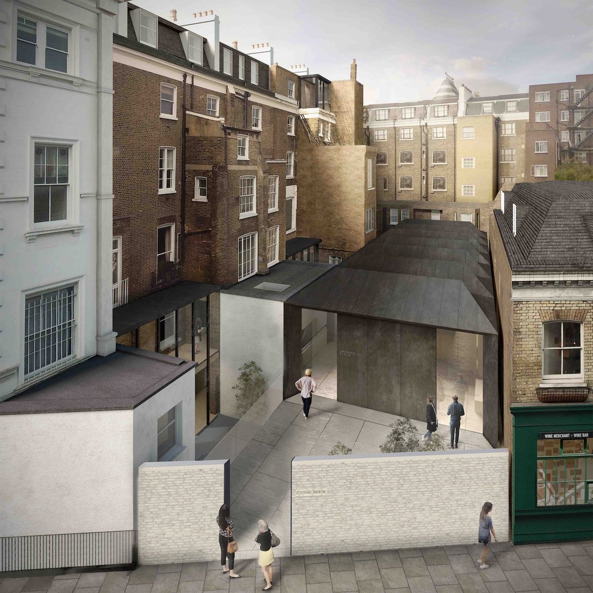A Sectional preview of Cromwell Place showing the underground storage and glass walkway interlinking the grade II listed buildings. Designed by