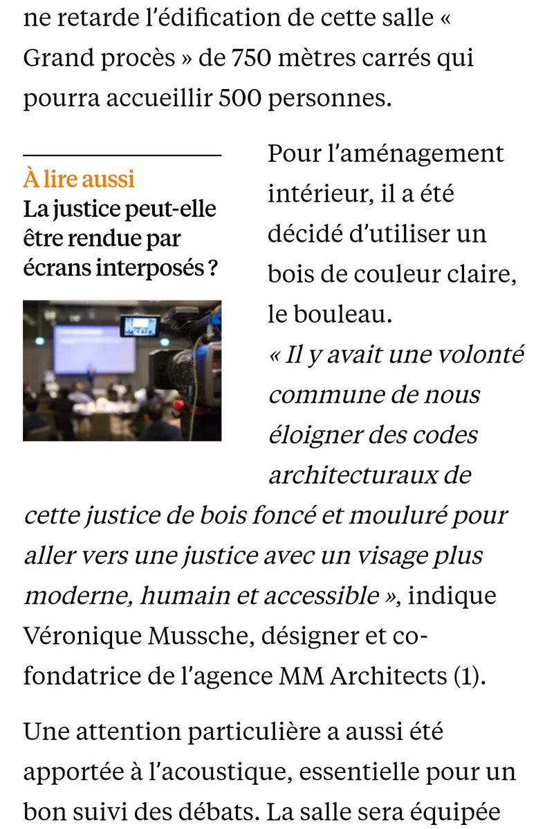 Article et interview de Véronique Mussche sur le projet de salle d'audience des "grands procès".
