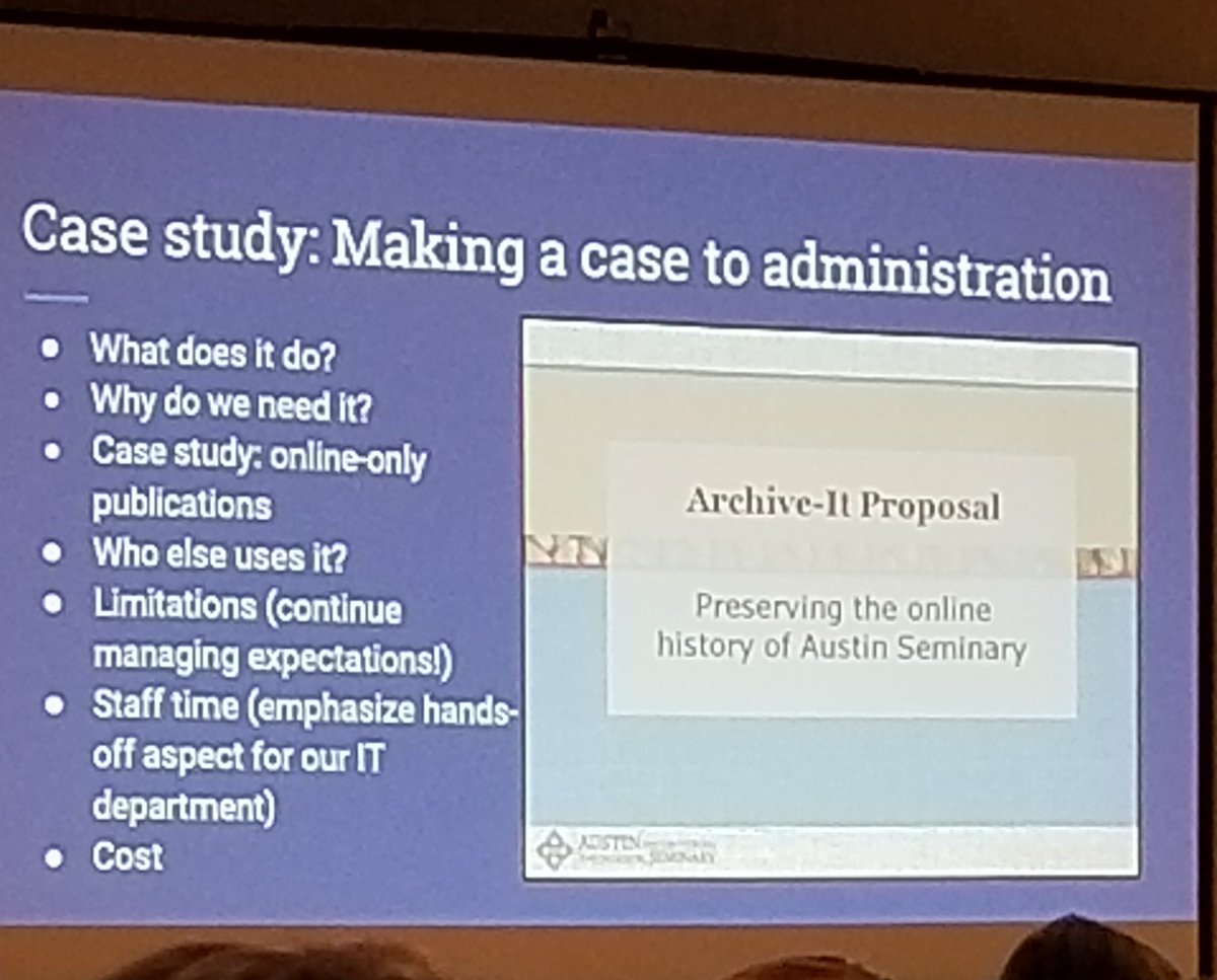 #ssa2018 S3 Web Archiving: Some good considerations from@austinarchivist when making your case to administration that your repository should start using Archive-Itpic.twitter.com/ax3T1CFkrQ
