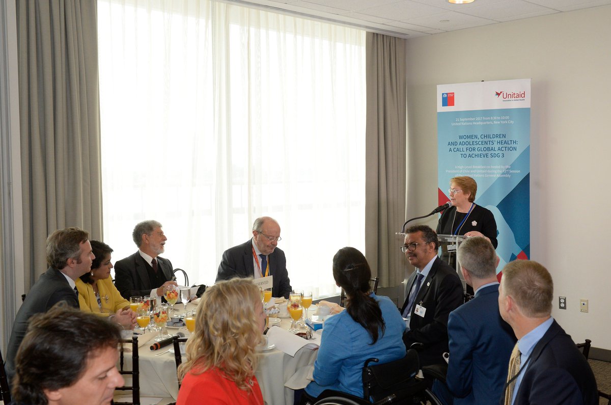Ahora: Pdta @mbachelet participa en Desayuno de Alto Nivel "Women, Children and Adolescents: A Call for Global Action to Achieve SDG3" #UNGApic.twitter.com/NTWtxG33sN
