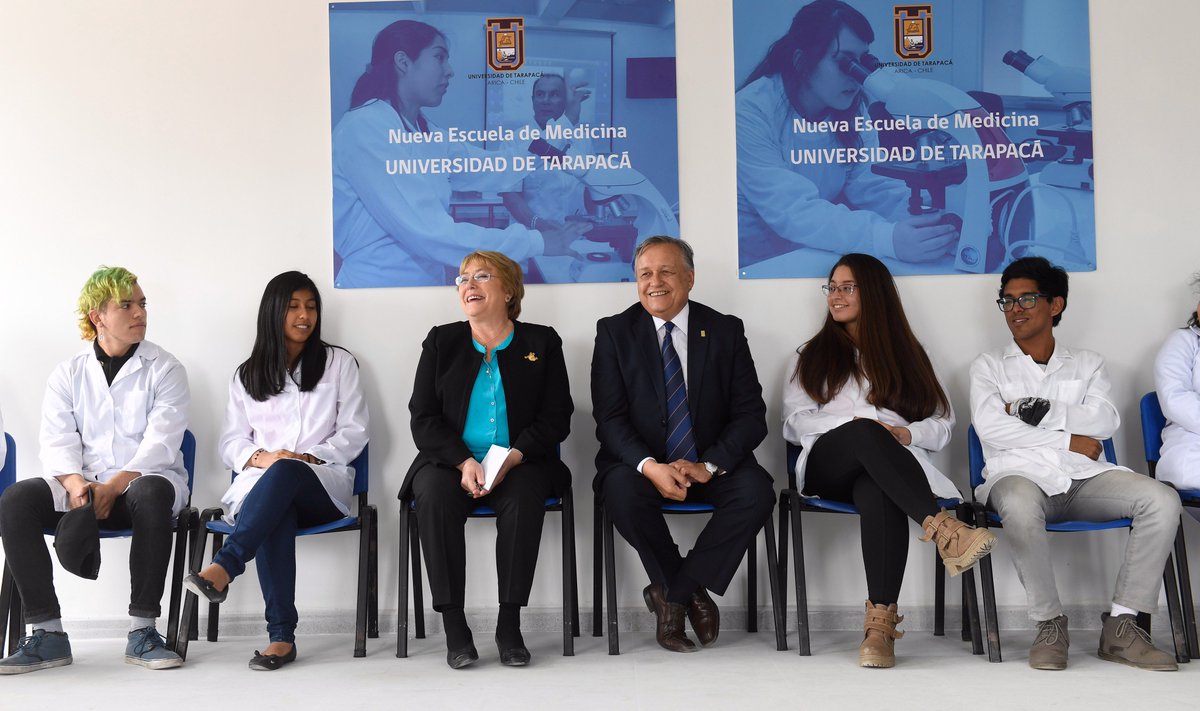 Presidenta @mbachelet recorre las obras de la nueva Escuela de Medicina de la U. de Tarapacá y conversa con alumnos: https://s.gob.cl/2AIF4oF pic.twitter.com/JEVGUYvm3s